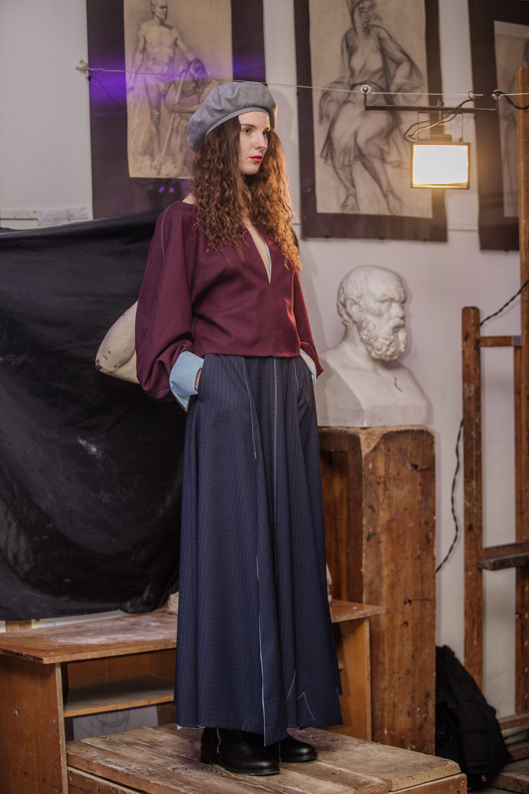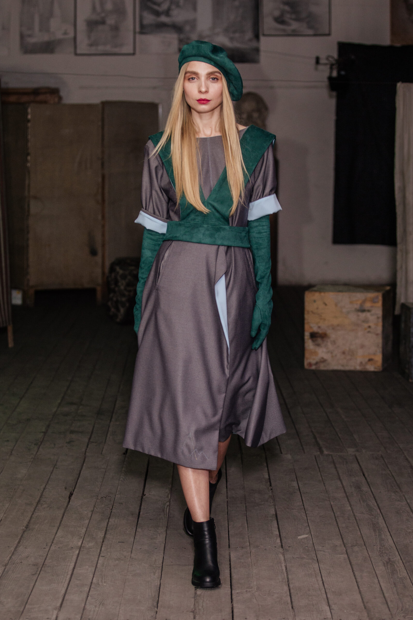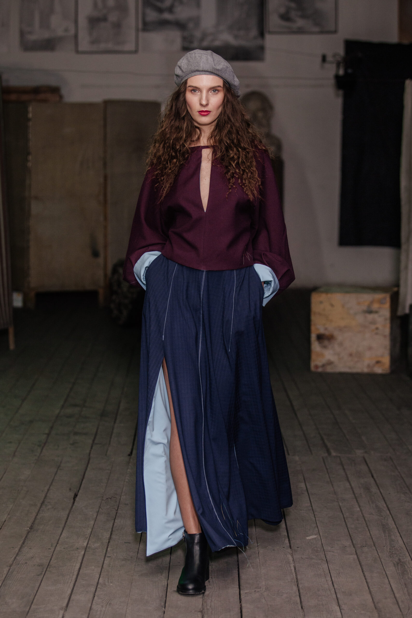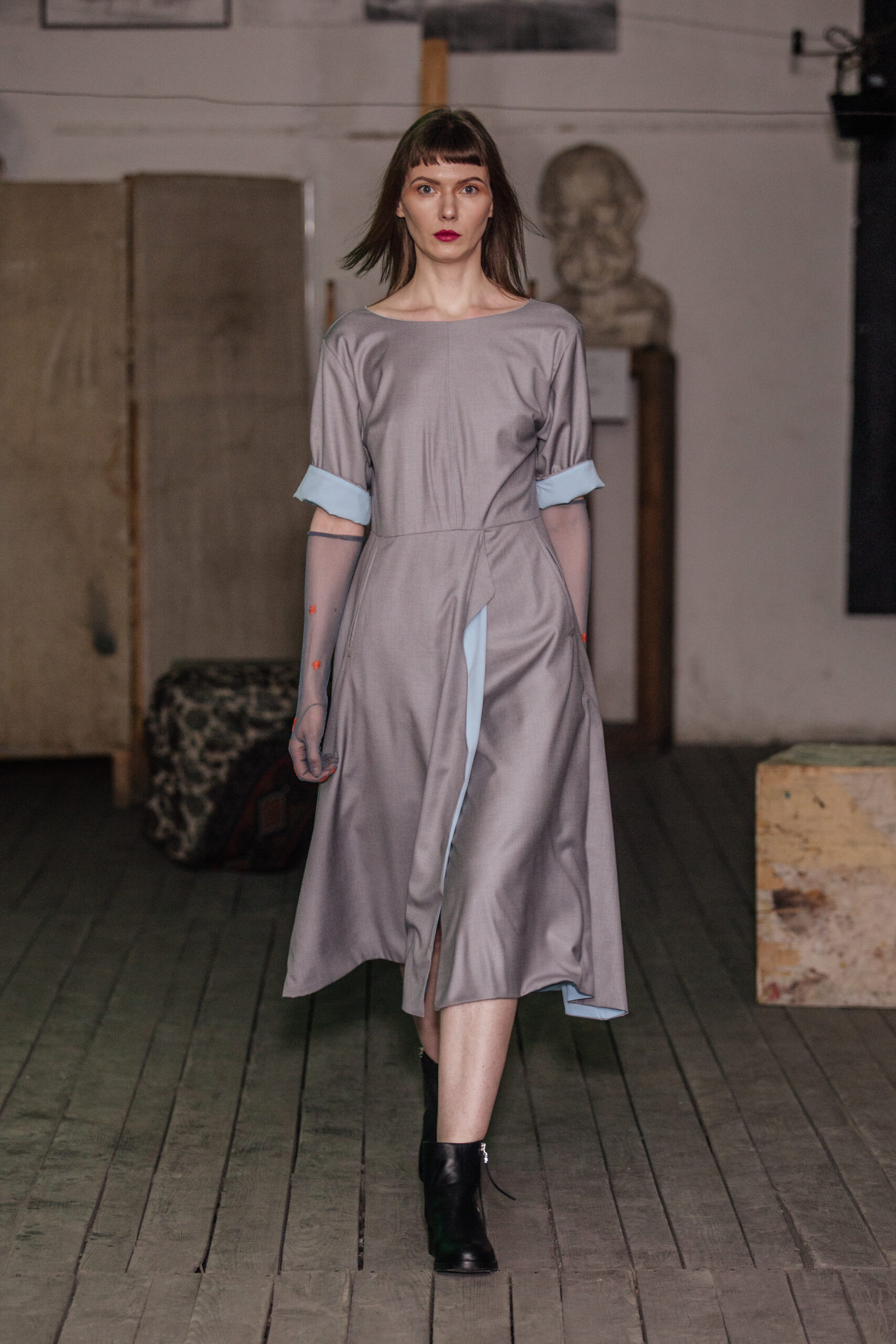 Колекція AW19 20 — це 10 луків. Сукні, спідниці, светри, блузки комбінезони. А також один чоловічий лук. Усе сіро-синій гамі із блакитною підкладкою та оранжевими акцентами.