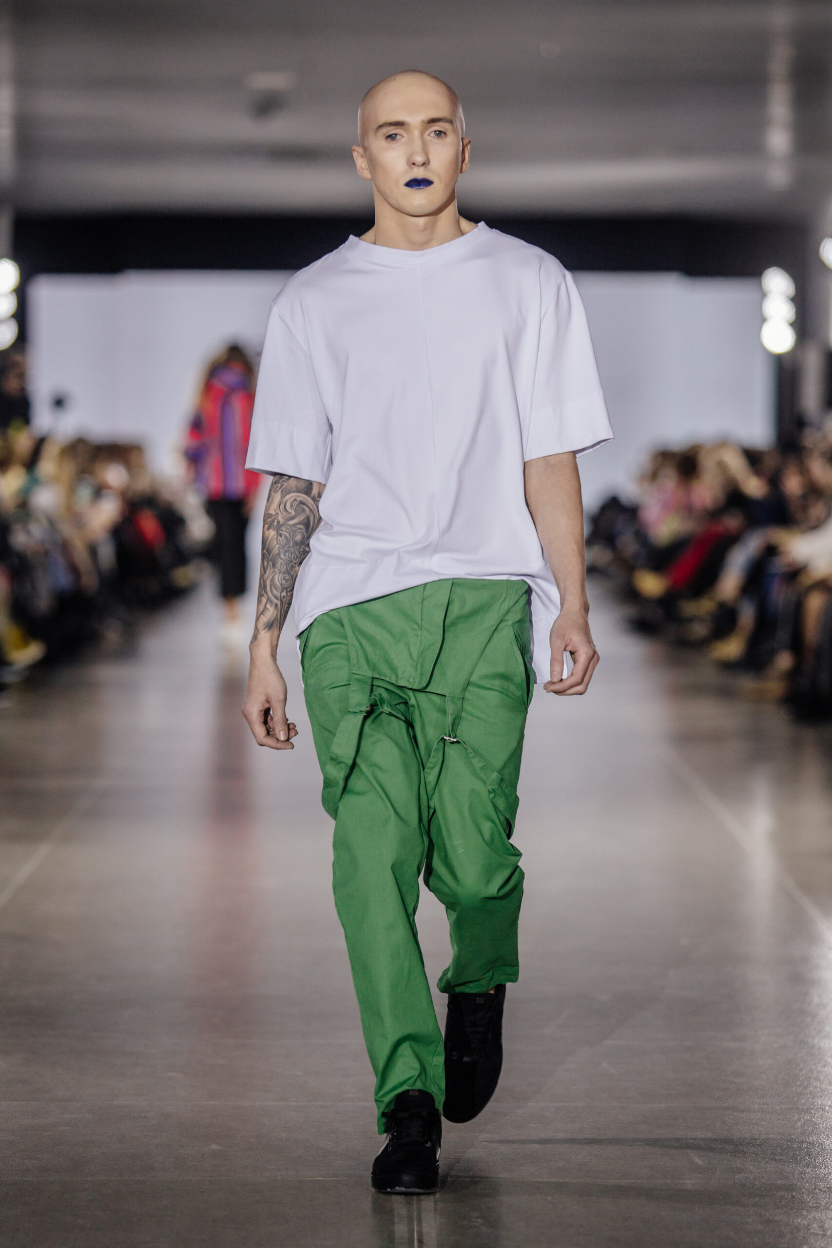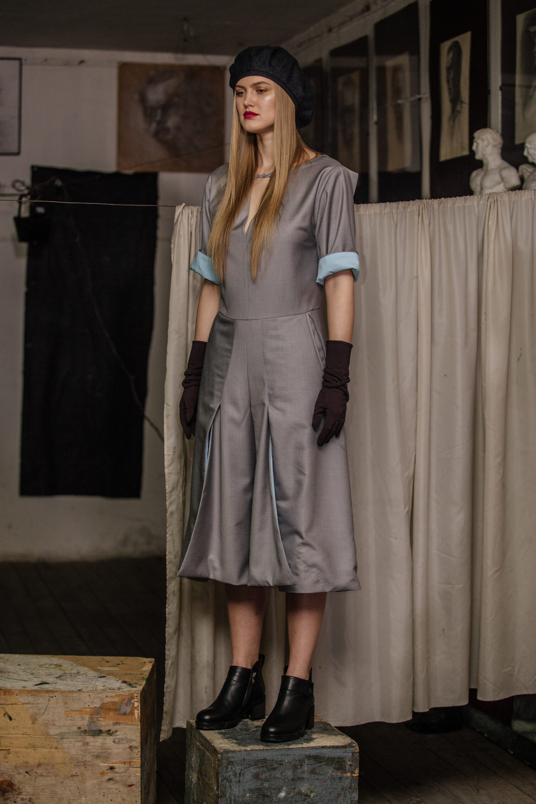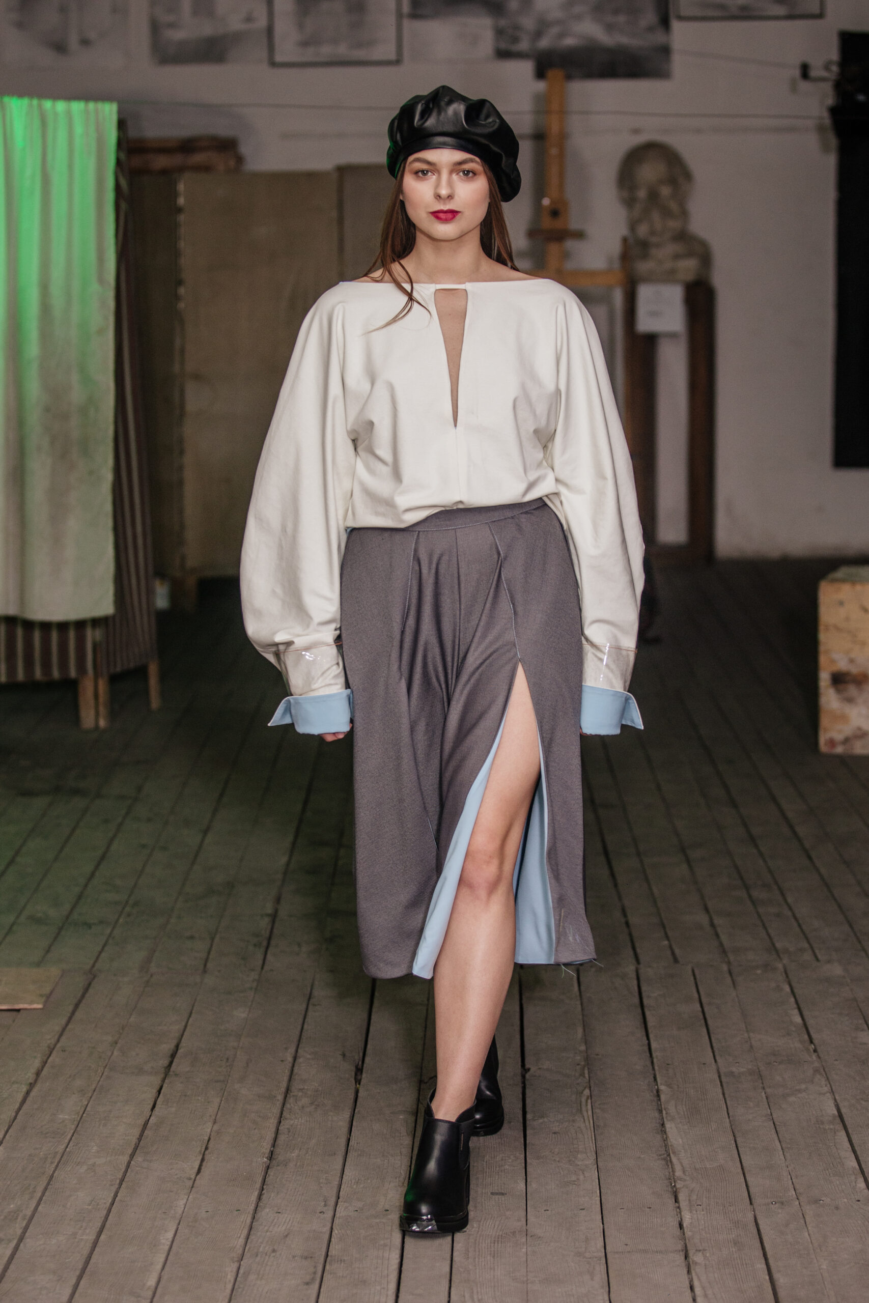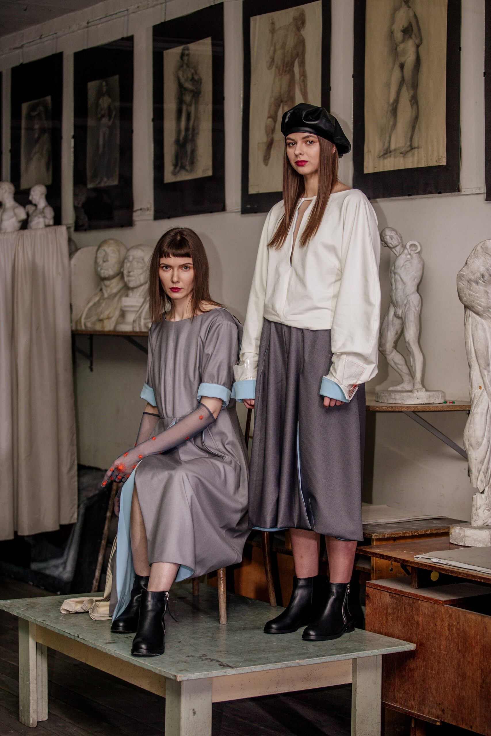 Колекція AW19 20 — це 10 луків. Сукні, спідниці, светри, блузки комбінезони. А також один чоловічий лук. Усе сіро-синій гамі із блакитною підкладкою та оранжевими акцентами.