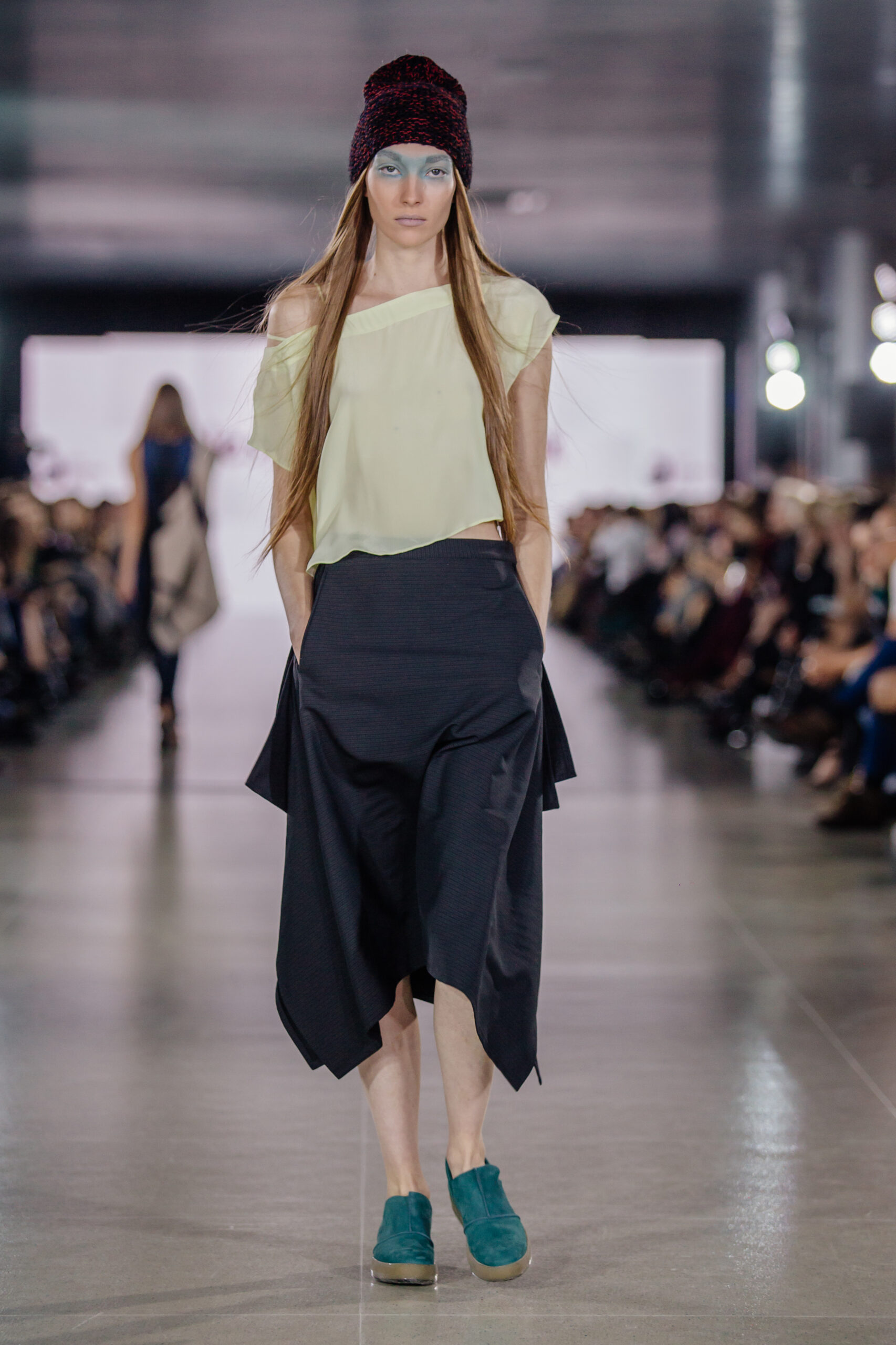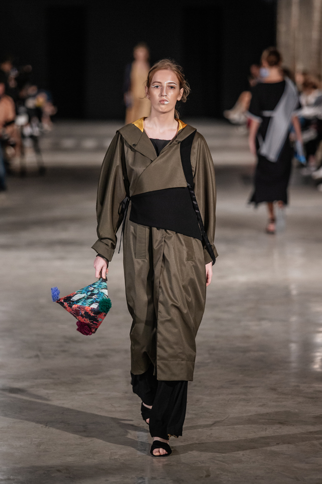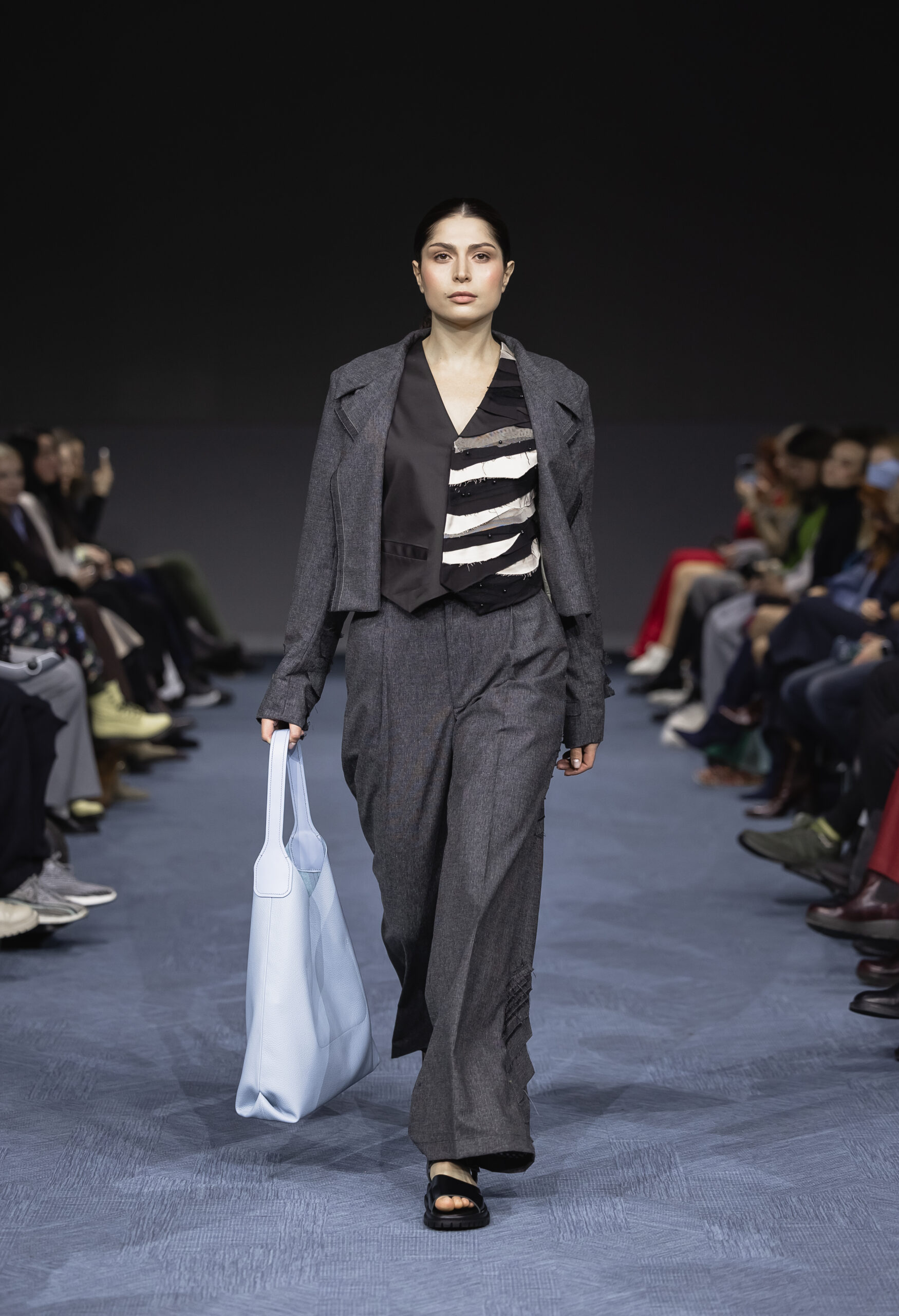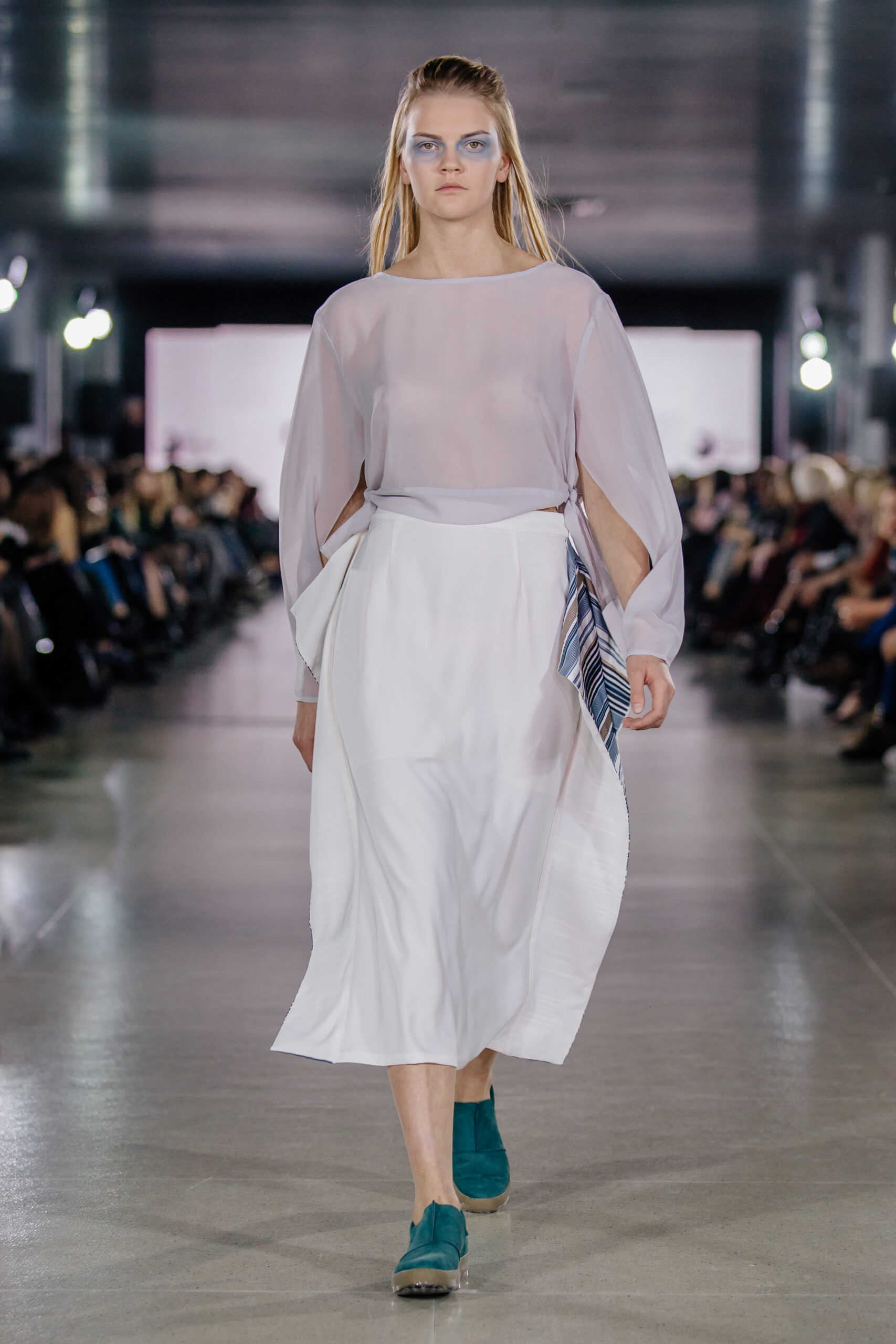 Колекція AW19 20 — це 10 луків. Сукні, спідниці, светри, блузки комбінезони. А також один чоловічий лук. Усе сіро-синій гамі із блакитною підкладкою та оранжевими акцентами.
