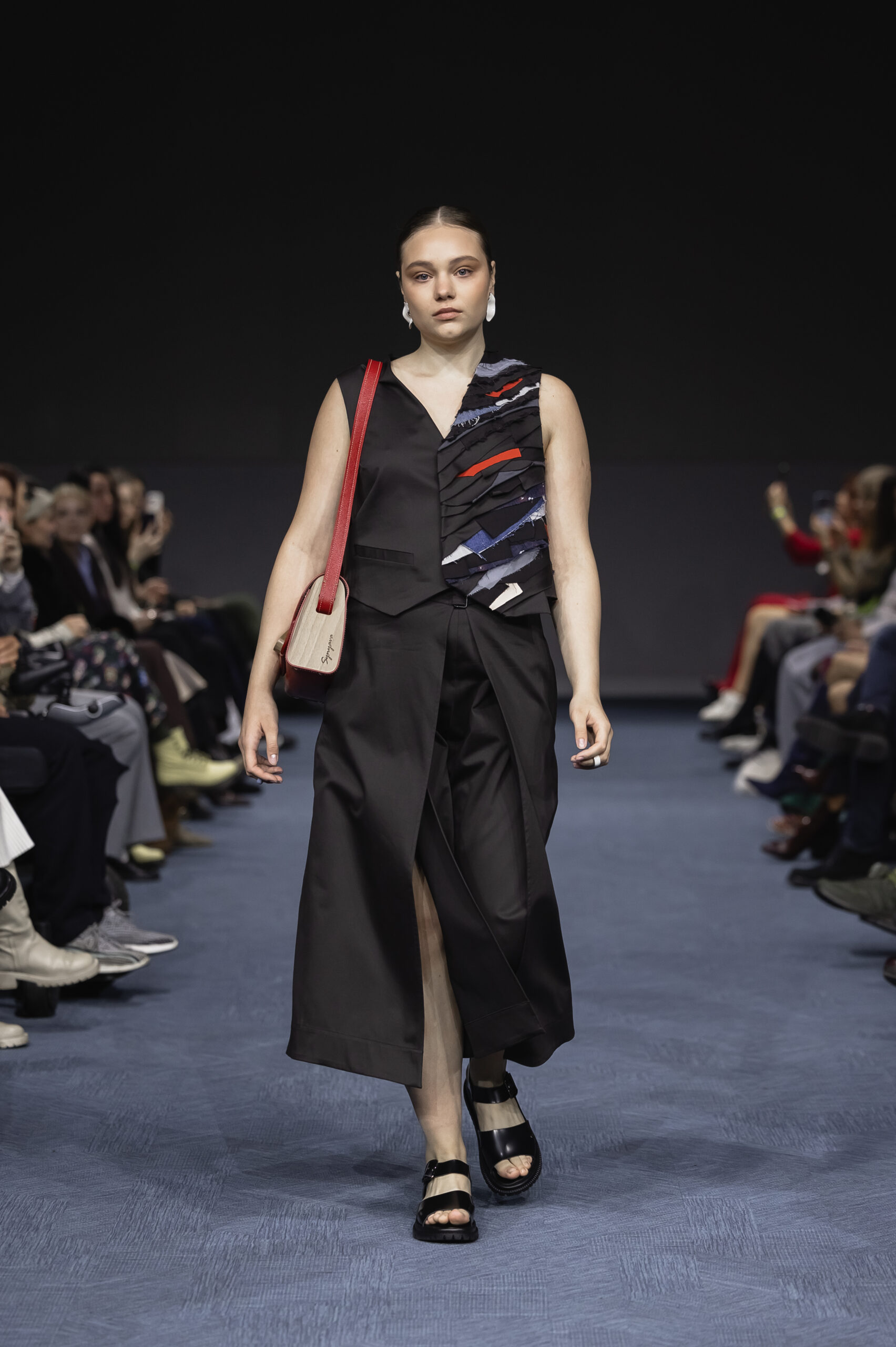 Колекція складається з мембранні тканини, трикотажні футболки, вовняні чоловічі піджаки, лляні сукні, комбінезони.