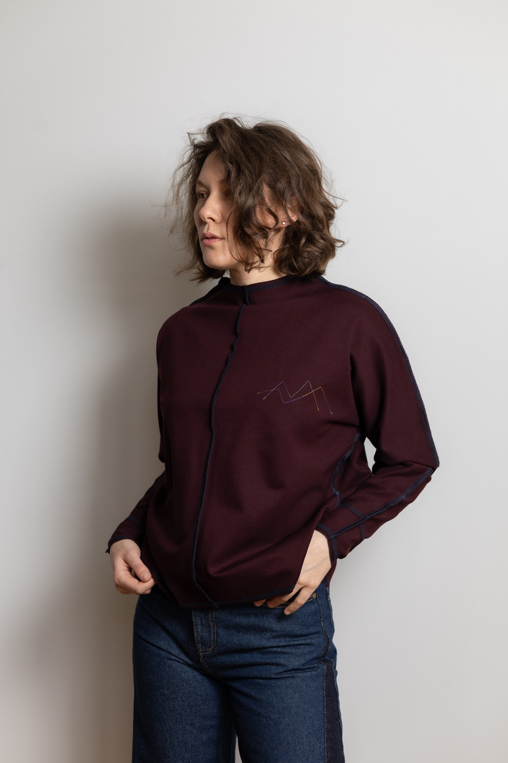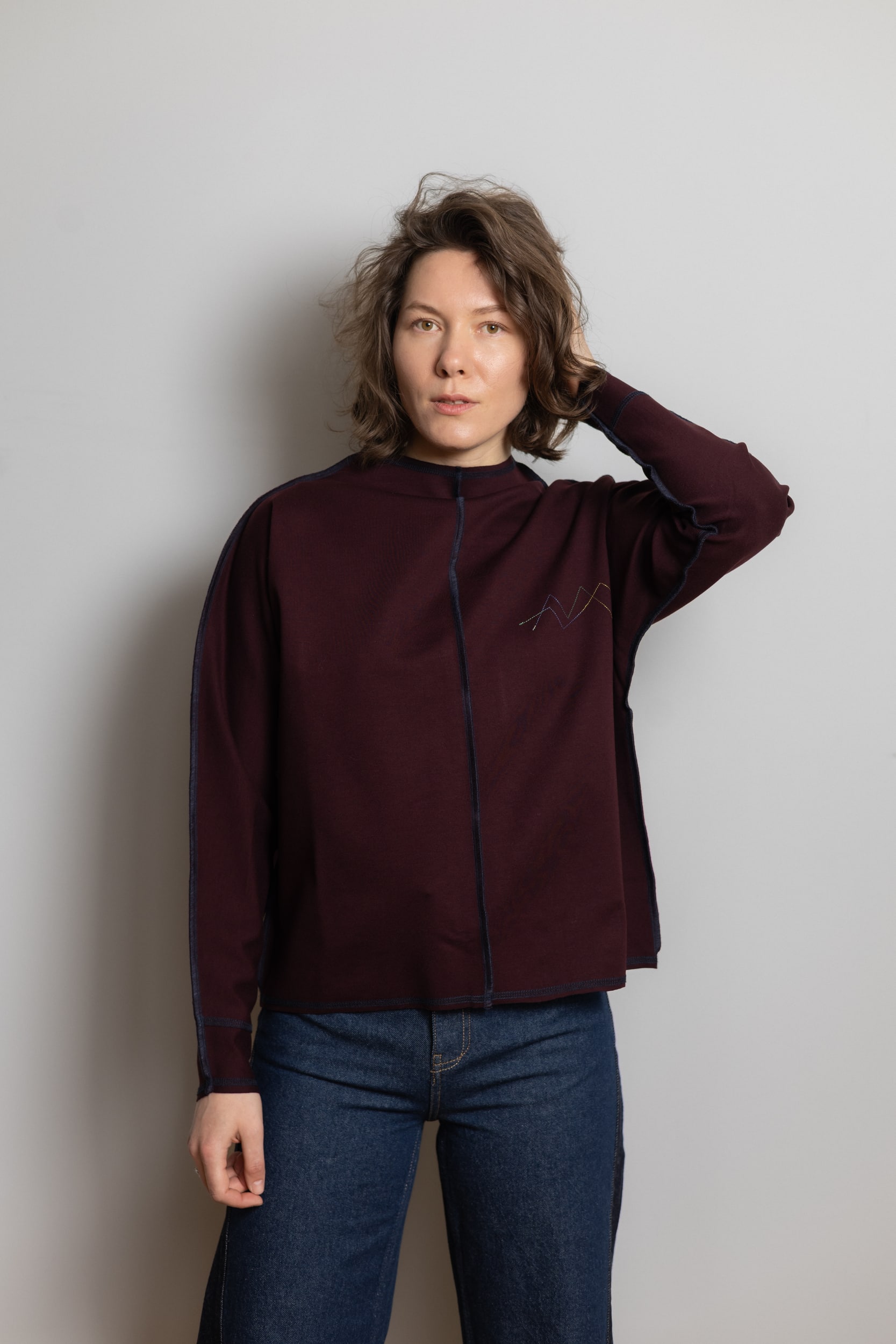 Базовний лонгслів зі швами на лице, пошитий з дуже якісного, щільного трикотажу.