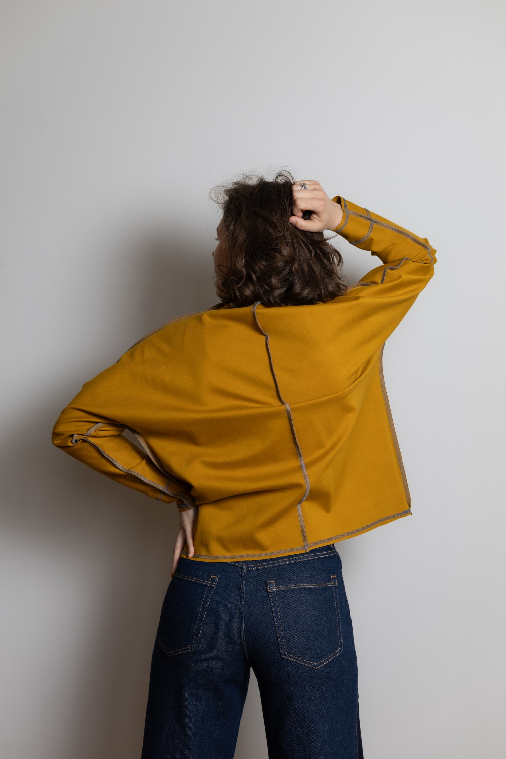 Базовний лонгслів зі швами на лице, пошитий з дуже якісного, щільного трикотажу.