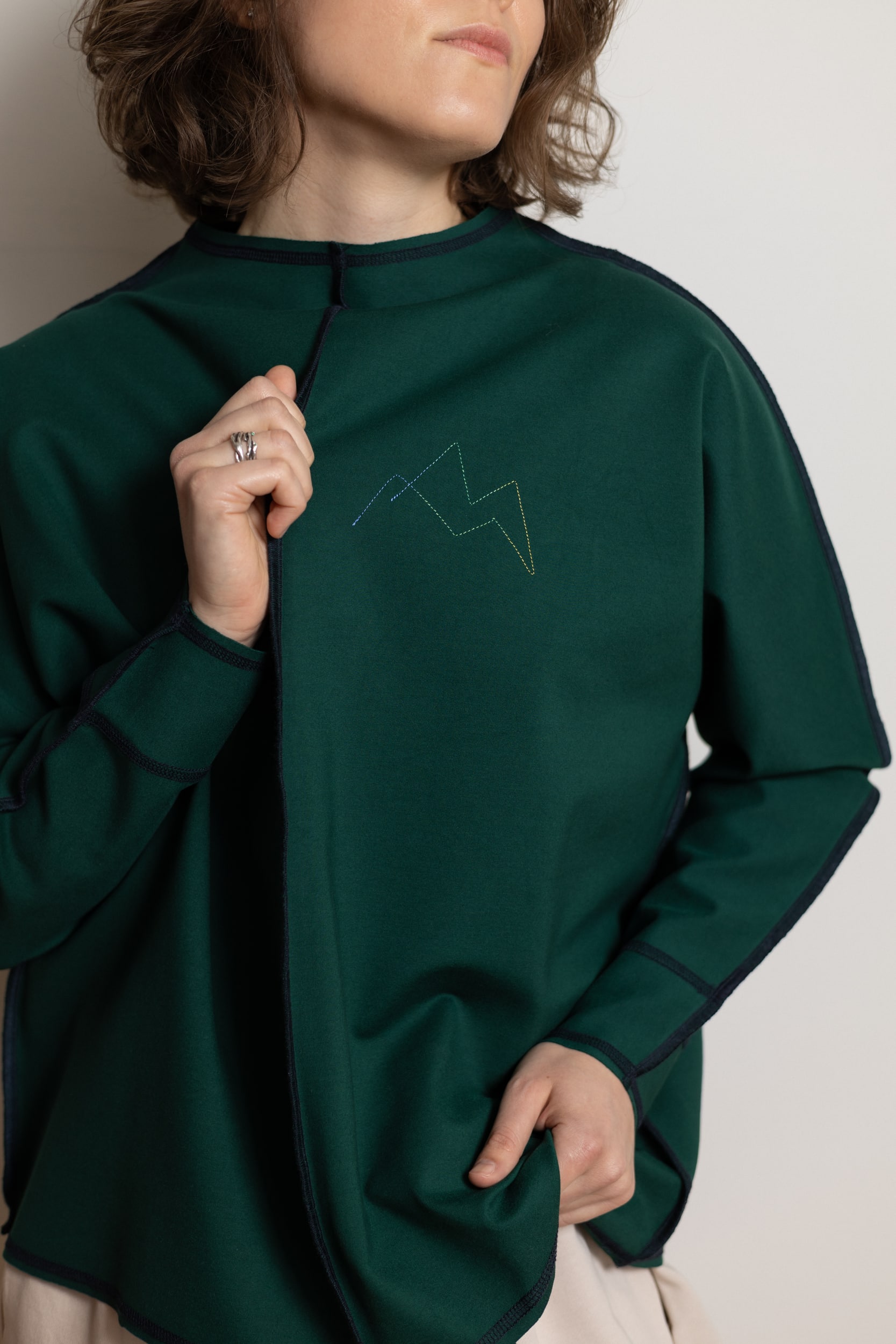 Має делікатну вишивку гір з лівого боку “Гори в моєму серденьку”.