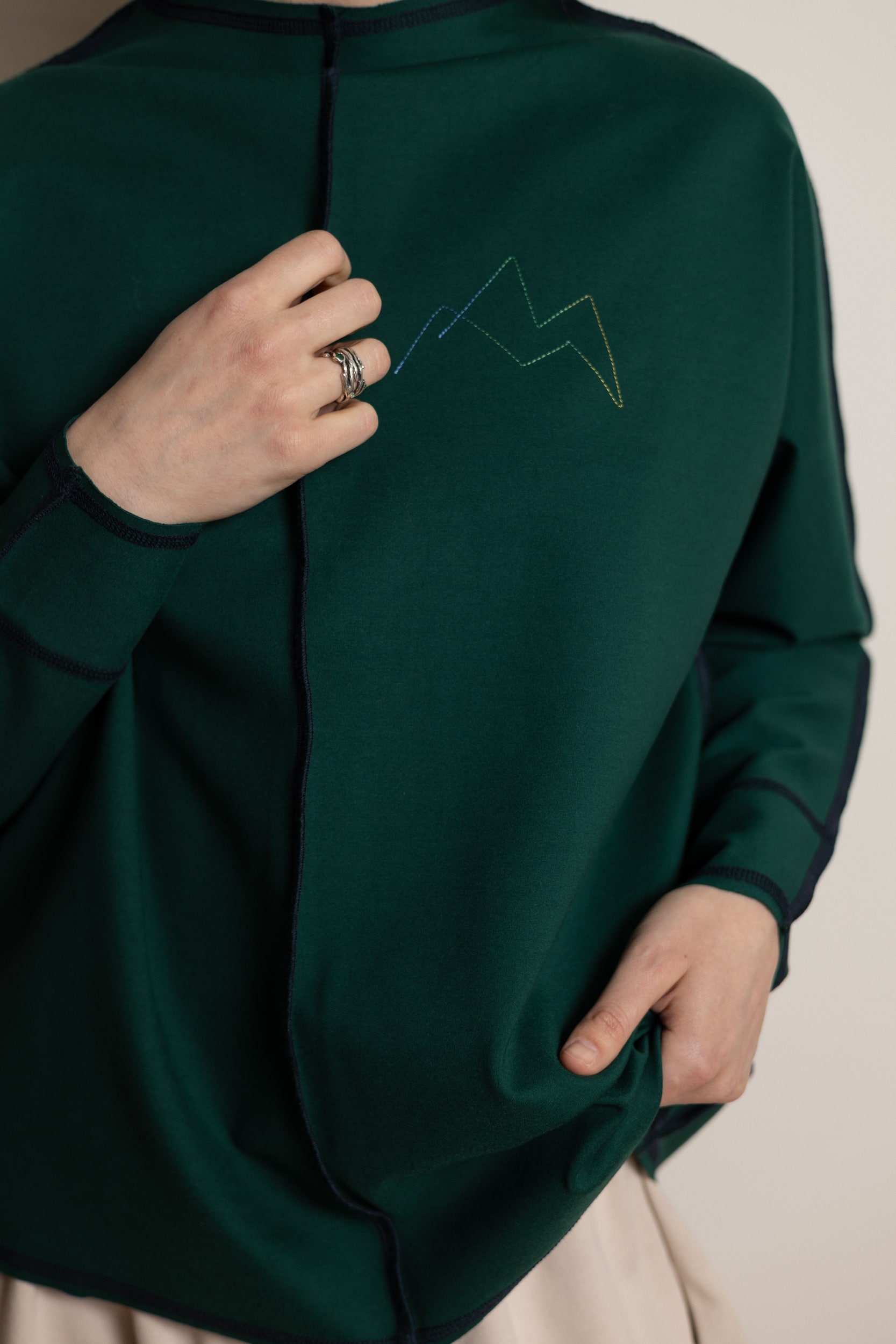 Базовний лонгслів зі швами на лице, пошитий з дуже якісного, щільного трикотажу.
